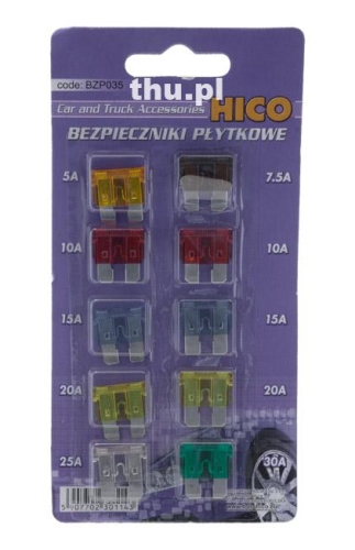 Bezpieczniki płytkowe 5A / 7,5A / 10A / 15A / 20A / 25A / 30A